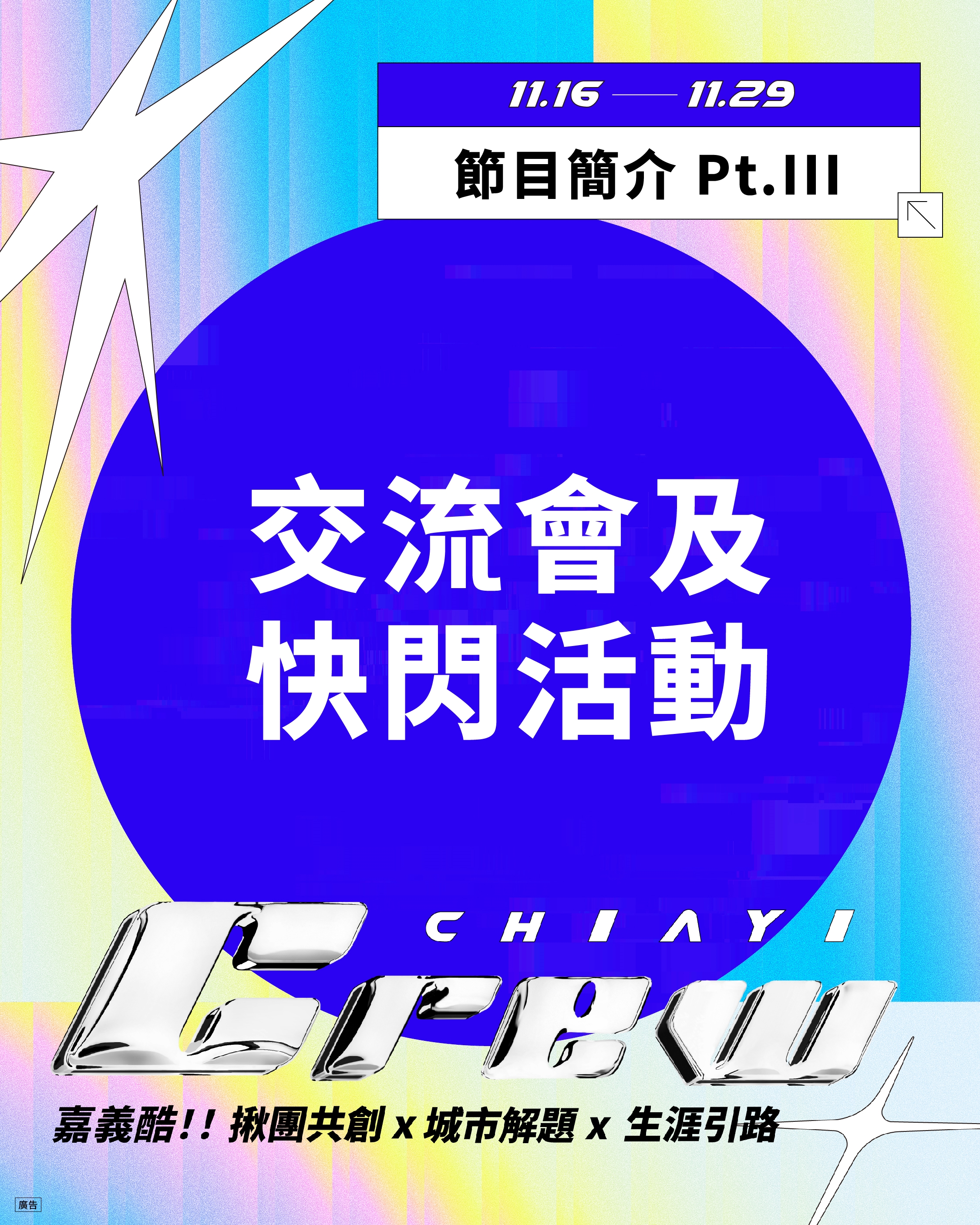 每一次的活動都是一期一會,報名要快!11.16 —— 11.29 限定交流會、快閃活動,歡迎和我們酷在一起!
